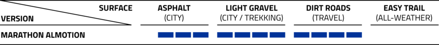THE STATE-OF-THE-ART TOURING TIRE. Incredibly multipurpose tread with the latest tire technology for ultimate riding performance and increased puncture protection. The Marathon Almotion is safe, agile and versatile. The new, high-performance ADDIX compound gives the tire improved grip and lower rolling resistance. Ideal for rigorous tours by bike or e-bike (E-25).