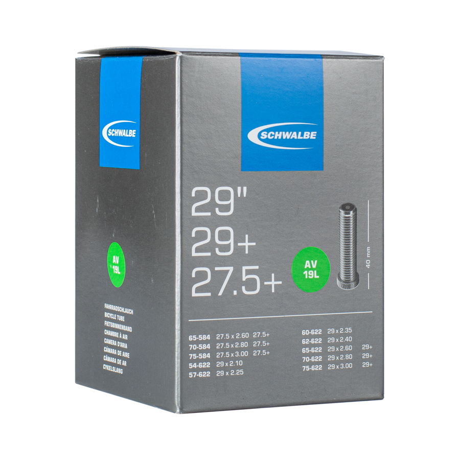 The SCHWALBE TUBE NO. 19+ is the reliable companion for bicycle tyres in sizes 27.5"/28"/29".
