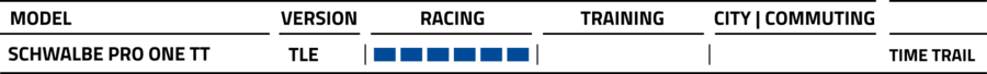 Uncompromisingly for competition use. TT stands for speed, lowest rolling resistance and minimum weight. The riding characteristics are nevertheless inimitably good.