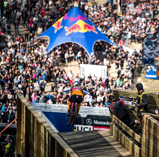 40,000 enthusiastic fans screamed Pierron to his first victory in the French pilgrimage site. Benoit Coulanges (Dorval AM Commencal) finished fourth. In the women's race, Camille Balanche (Dorval AM Commencal), world champion Myriam Nicole (Commencal/Muc-Off) and Tahnee Seagrave (Canyon Collective FMD) occupied the podium with Schwalbe athletes. All relied on Magic Mary on the extremely steep, rocky course that was very challenging due to changing surfaces. #controllingthelimits
