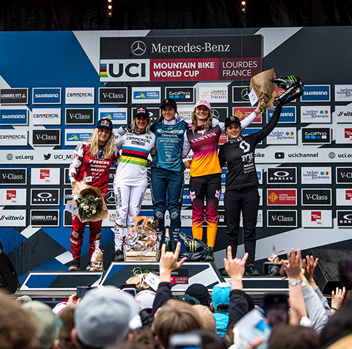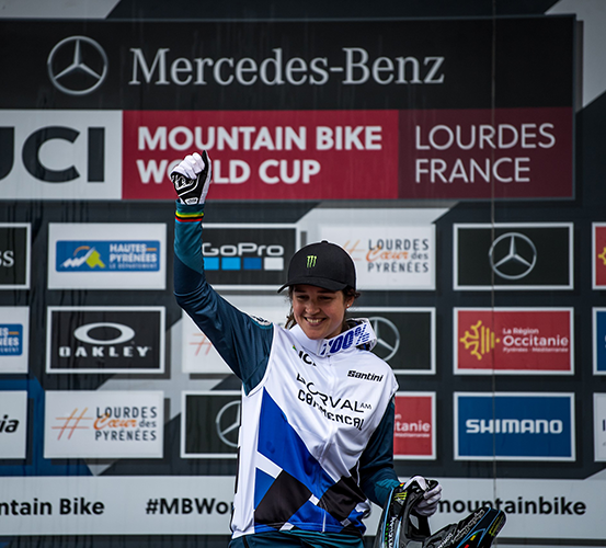 Spectacular home victory for Amaury Pierron Team Commencal Muc Off and a triple podium in the women's race for Schwalbe: After two years without spectators, the Downhill WC in Lourdes offered pure excitement, drama and action.