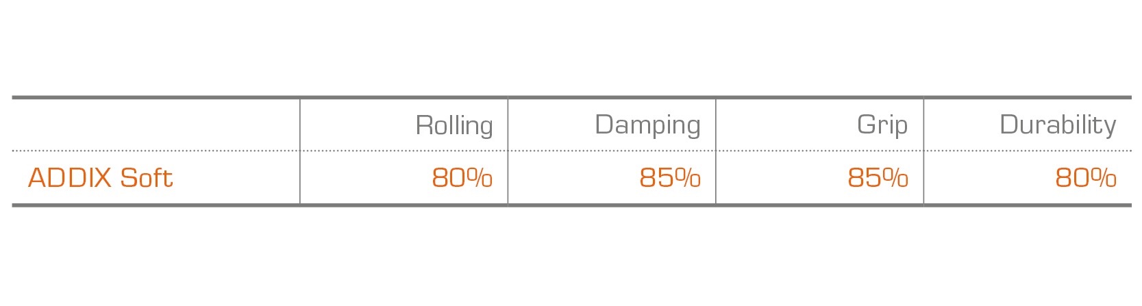 Extremely soft to cope with very difficult challenges. ADDIX Ultra Soft appears to stick to the ground, literally clawing its way into the subsoil because there’s only one goal in sight: maximum damping and maximum grip.