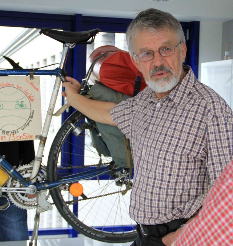 In the 1980s: A bicycle tyre is not a sophisticated, high-quality product. But those who dream of cycling around the world need a reliable tyre. Wolfgang Reiche of Bremen (Germany), at the time 34 years of age, planned his world trip in 1981. He asked Schwalbe for support just at the right time, because Schwalbe had a vision of developing the first high-quality long-distance and everyday tyre for bicycles.