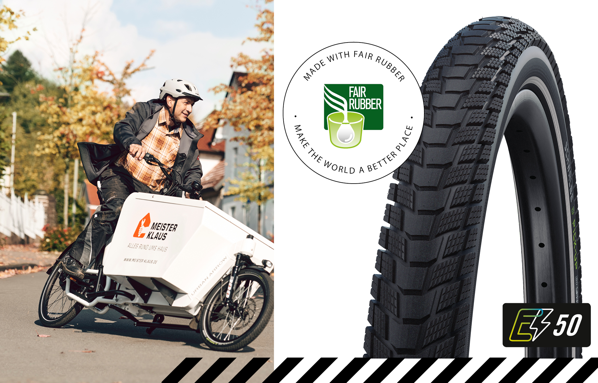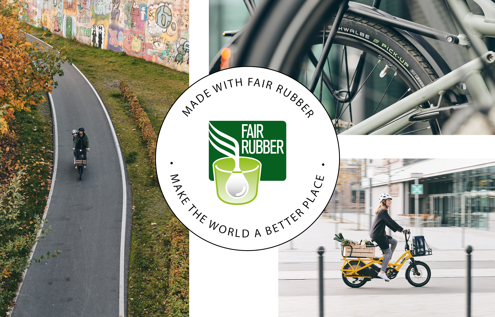 Cargo bike riders are setting an example, just like the Schwalbe Pick-Up. Schwalbe is committed to fair and sustainable production of natural rubber. The Schwalbe Pick-Up is one of the first tires ever to be produced with Fair Rubber.