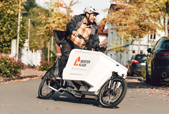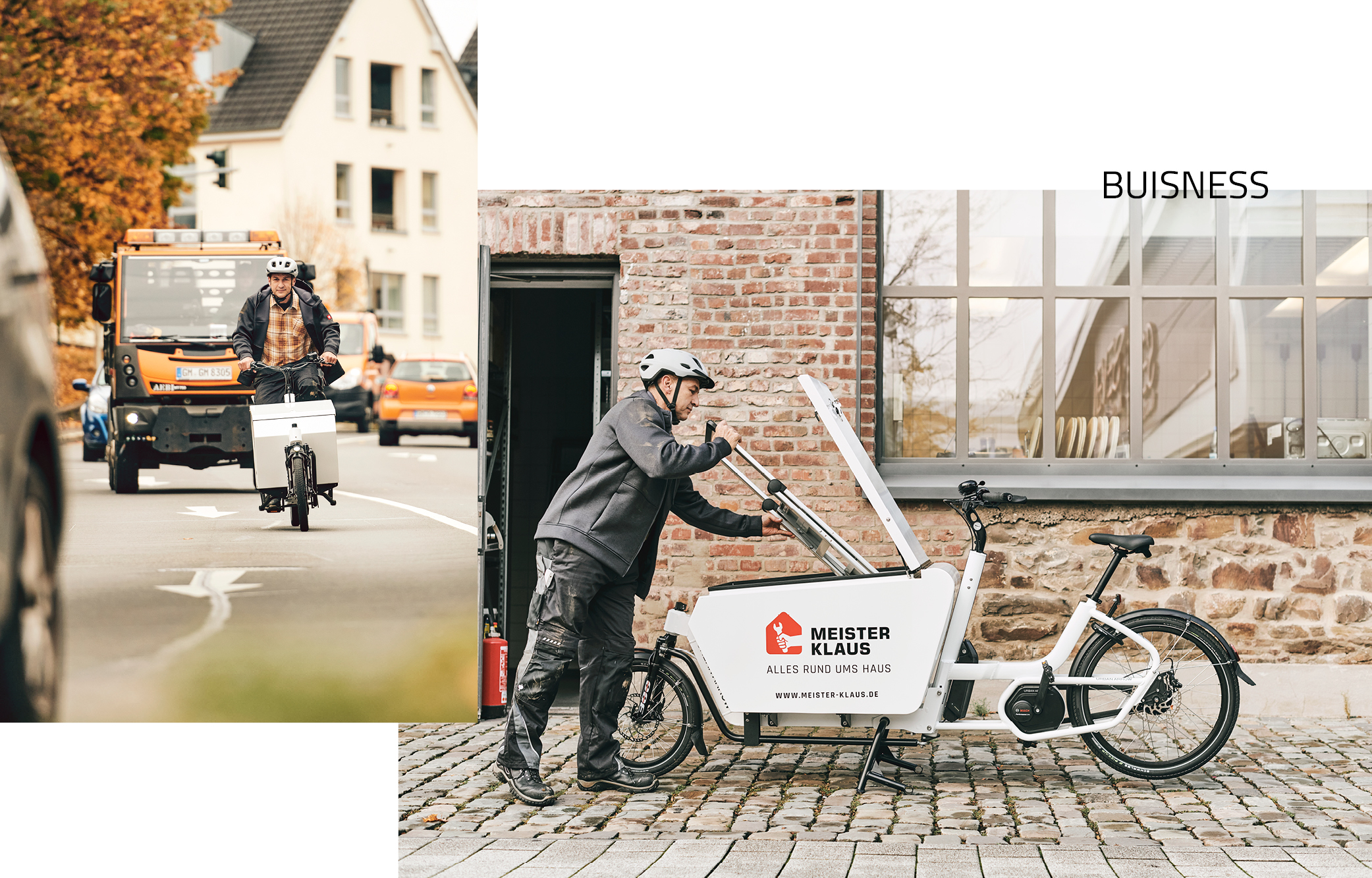 Cargo bike instead of a small van. Right in the city centre, right in the middle of the bustling life. For many business owners, this often means: traffic jams, searching for parking, and no time for customers. No more of that if you travel by cargo bike: Thanks to spacious cargo areas, this bicycle offers plenty of storage; even heavy equipment such as work tools may be carried along without problems. Most of the time, it is easy enough to park right in front of the entrance.