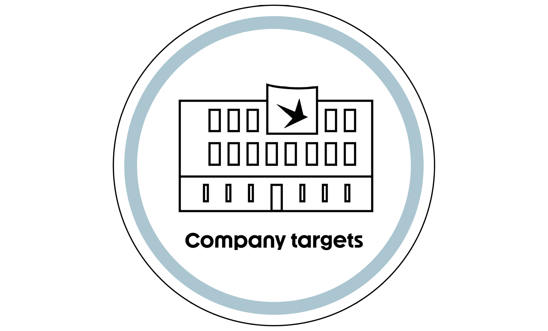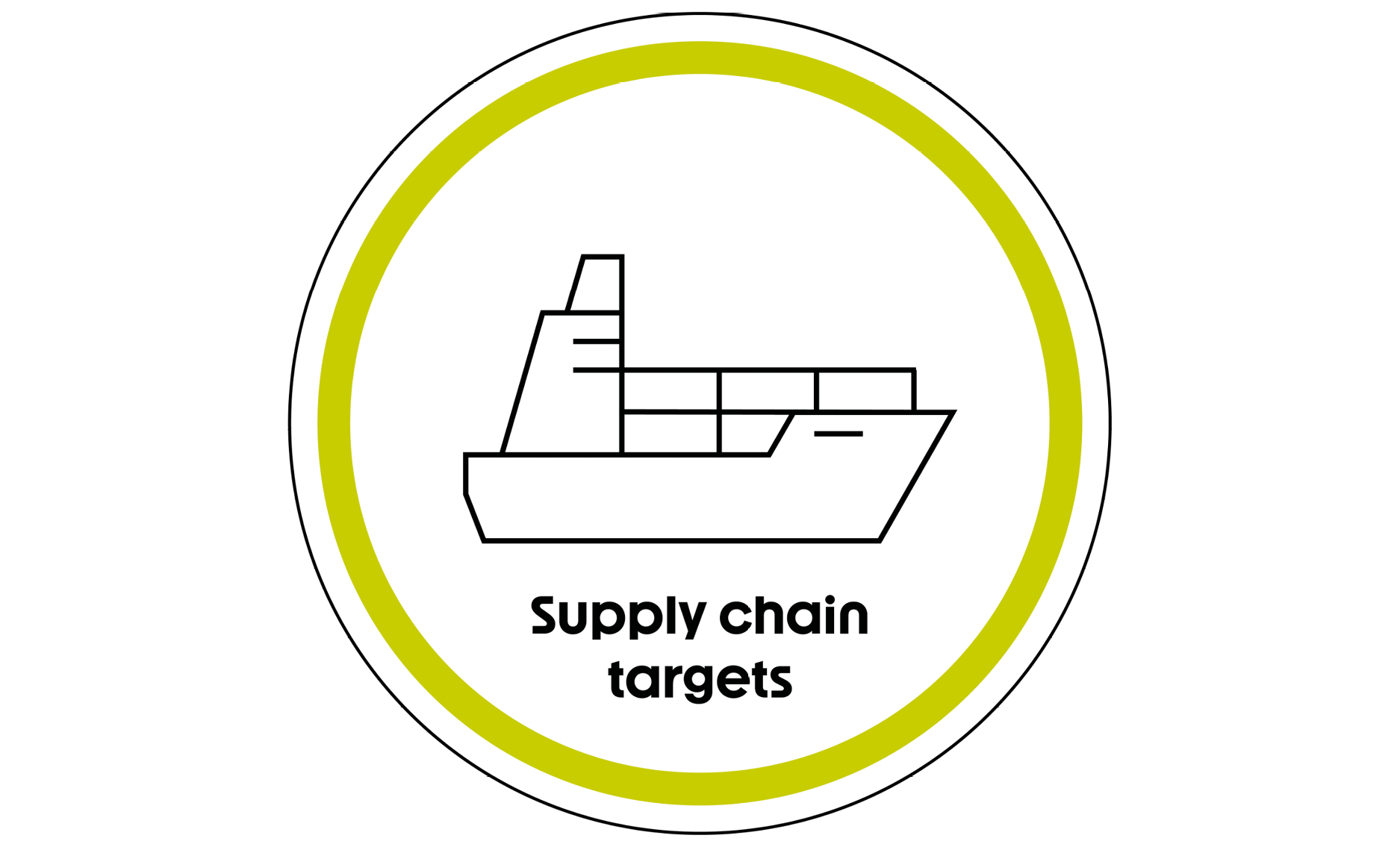 2030–2035: own energy production covers 50% of the electricity requirement in Germany, 100% sustainable procurement, emissions cut by 75% (scopes 1, 2 and 3), absolute decoupling