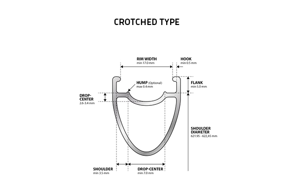 These values apply to all rims, whether they are tubeless, normal, crotched type or hookless rims. To guarantee a safe fit, it is generally important that the minimum flank height does not exceed 5.0mm. For tubeless tires, the shoulder diameter should be in the positive range of the authorized tolerance.