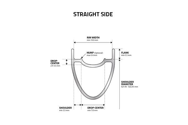 To ensure an easy tire fit, the drop-center of the rim should be 2.6 to 3.4mm deep, concave and at least 7mm wide. The rim width should be minimum 17mm; optimum dimensions are 19mm or 21mm.