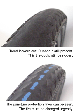 Unfortunately, many tires do not reach the possible mileage because they are continually ridden at inflation pressures that are too low. Insufficient inflation pressure means the tire cannot bear heavy loads. The tire sides have to deform excessively when running. The tire can only stand this kind of treatment for a limited time. At a certain point there is too much load on the sidewall and it tears.