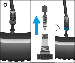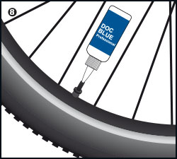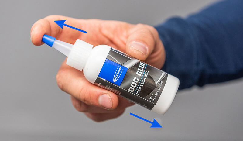 Punctures are automatically sealed and repaired by Doc Blue during the ride. Important: Keep riding or press the punctured part to the ground. Flexing supports the function of the sealant. Do not hold the defect spot to the top.