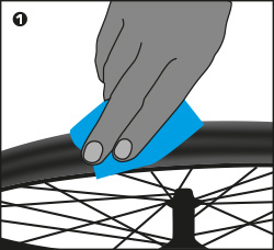- If the tubeless rim tape is old, defect or has extreme dimples at the spoke holes, replace with new tubeless rim tape.