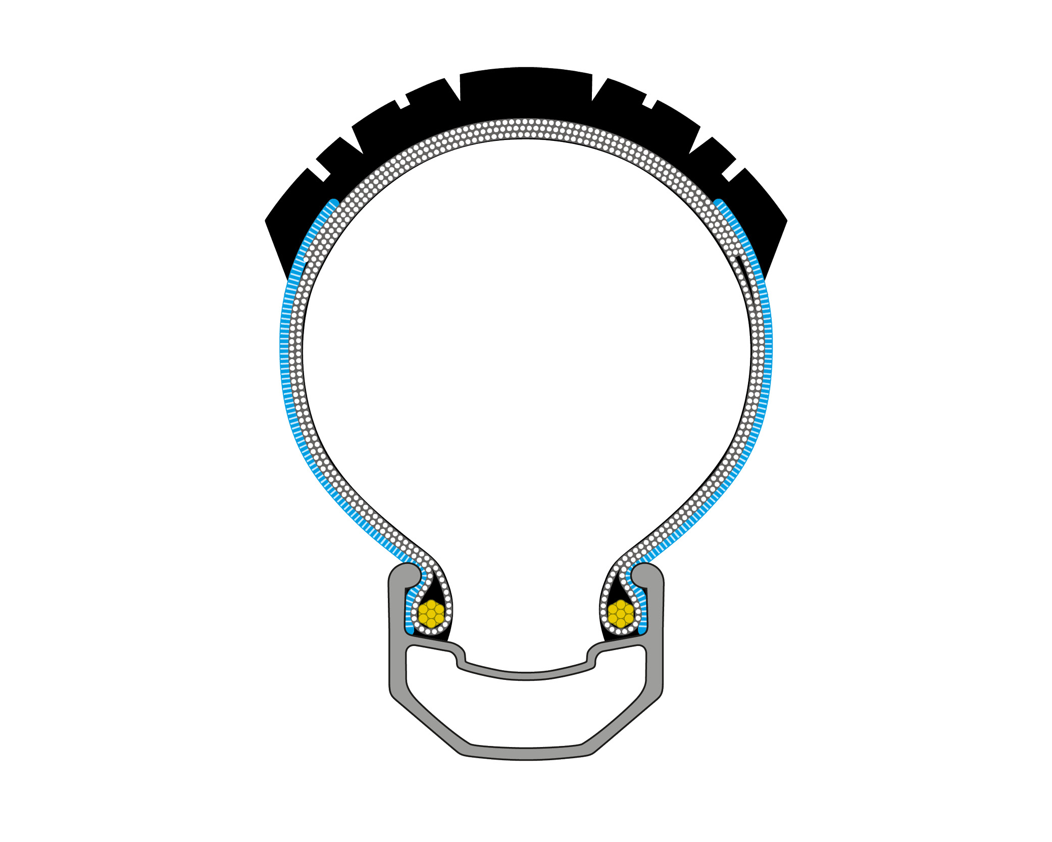 MicroSkin envelops the entire carcass and facilitates smooth Tubeless Easy operation even for high-pressure tires. And on a side note, MicroSkin also improves the cut resistance.