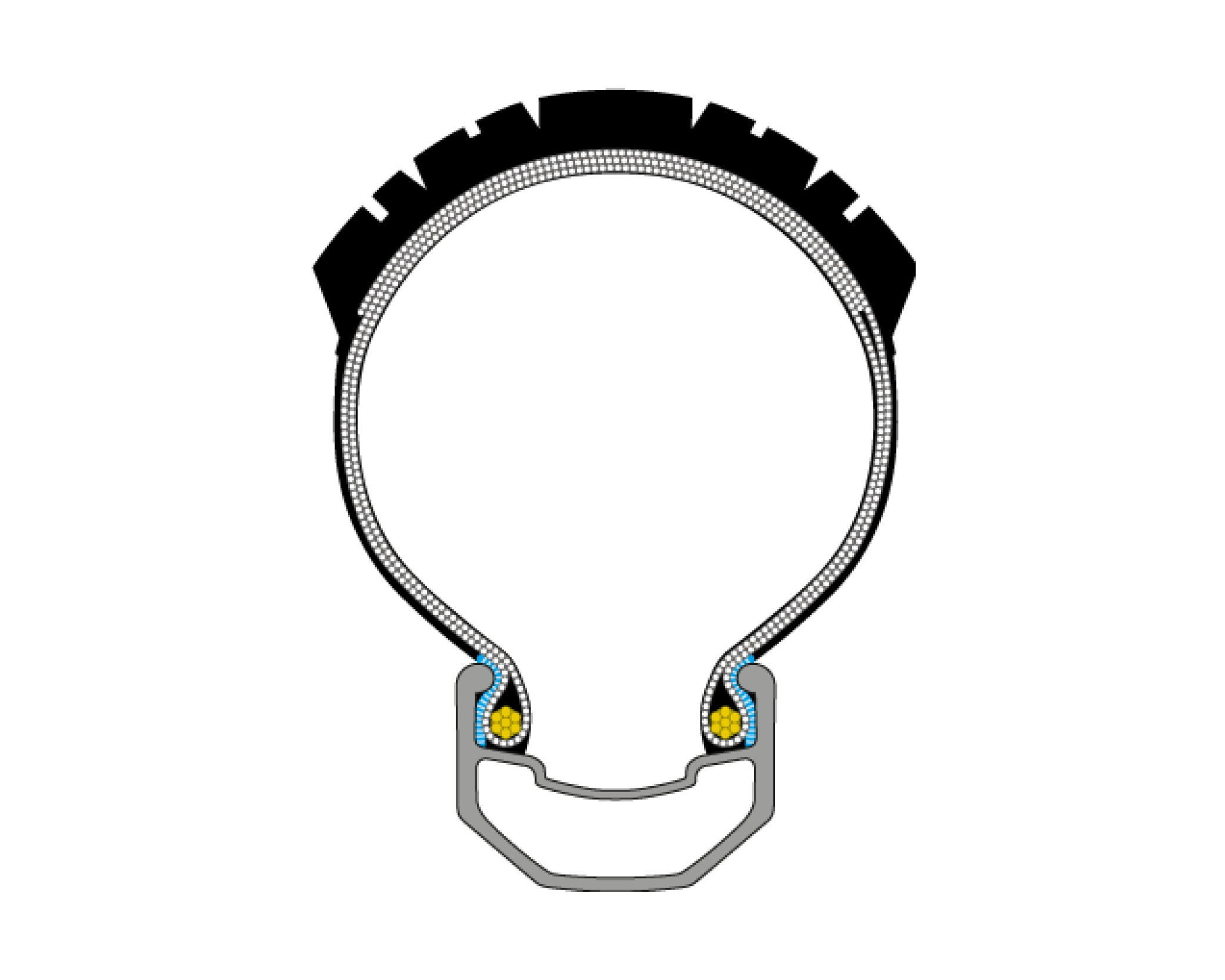 The turn-up construction integrates Tubeless Easy technology in the most progressive way possible. This is what makes the tire so supple and comfortable. Riding this tire feels just like the velvety motion of a classic tubular tire.