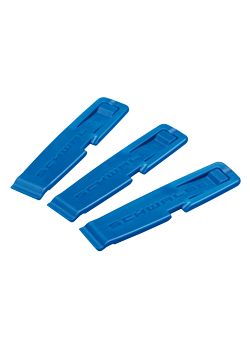The new tire levers are especially helpful in difficult assembly operations. Clip it onto the rim, to fix the already mounted section of the tire, and it won‘t slide out when the last section is levered onto the rim.